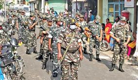 துணை ராணுவ வீரர்கள் பங்கேற்ற கொடி அணிவகுப்பு :
