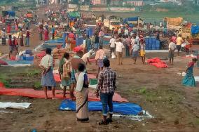 கட்டுமானப் பணிக்காக மூடப்பட்டதால் வைகை ஆற்றுக்குள் நடந்த மானாமதுரை வாரச்சந்தை