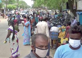 தடையை மீறி கூடிய வாரச் சந்தை : செய்துங்கநல்லூரில் போக்குவரத்து நெரிசல்