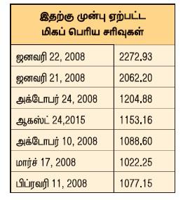 நேற்றைய வர்த்தகத்தில் அபான் ஆஃப்ஷோர், ஏபிஜி ஷிப்யார்டு, அதானி பவர், கெயில், ஐசிஐசிஐ வங்கி, என்டிபிசி, டாடா மோட்டார்ஸ், டாடா ஸ்டீல், விஎஸ்டி இண்டஸ்ட்ரீஸ் உள்ளிட்ட 205 நிறுவனப் பங்குகள் கடுமையாகச் சரிந்தன. தொடர்ந்து சரிவைச் சந்தித்து வந்த ஆம்டெக் ஆட்டோ பங்கு விலை நேற்று அதிகபட்சமாக 17% வரை சரிந்தது.