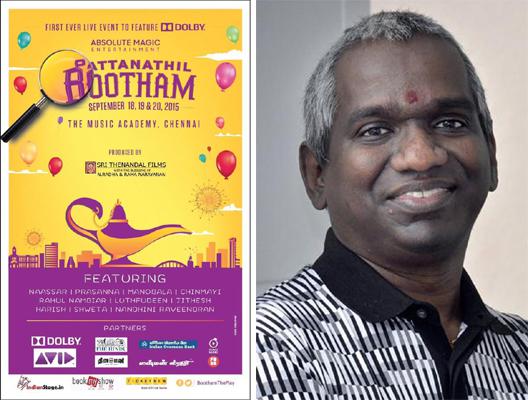 முதன் முறையாக 'பட்டணத்தில் பூதம்' மேடை நாடகத்தில் டால்பி ஒலியமைப்பை வைத்து புதுமை படைக்க இருக்கிறார்கள்.