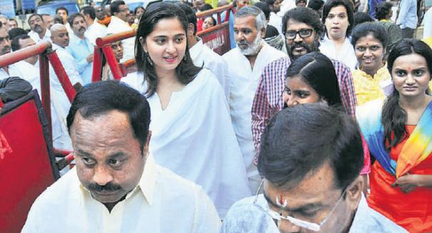 இந்நிலையில் இப்படம் வெற்றி பெற வேண்டி, நடிகை அனுஷ்கா, இயக்குநர் குணசேகர் மற்றும் படக்குழுவினர் நேற்று காலை திருப்பதி ஏழுமலையானை தரிசித்தனர்.