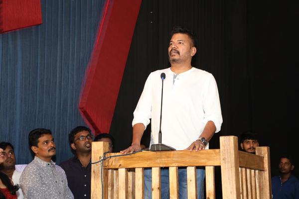 சிறப்பு விருந்தினர்கள் அனைவரும் குற்றவாளிக் கூண்டில் ஏறி அங்கே அமைக்கப்பட்டிருந்த ஒலிவாங்கியில் பேசினார்கள். இயக்குநர் ஷங்கர் பேசும்போது, ‘‘எங்கே விதிமீறல்கள் நடந்தாலும் அதைத் தட்டிக் கேட்பவர் ‘டிராஃபிக்’ ராமசாமி. அவர் ஒரு இன்ஸ்பயரிங்கான கேரக்டர். அவரிடம் ஒரு ஹீரோயிசம் தெரியும்! மனசுல அவருக்காகக் கை தட்டியிருக்கிறேன். இப்படி என் மனதில் பதிந்த அவருடைய கேரக்டரை வைத்து ஒரு படம் பண்ணணும் என்ற ஆசை என் மனதிலும் இருந்தது. காரணம், டிராஃபிக் ராமசாமி, கத்தியைக் கையில் எடுக்காத ஒரு இந்தியன்.