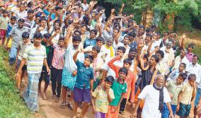 பயிர்களை அழித்து நீர்த்தேக்கத்துக்கு நிலம் கையகப்படுத்துவதா?- விவசாயிகள் சாலை மறியல்; தீக்குளிக்க முயற்சி