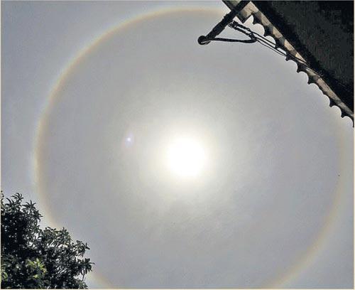 “பூமியில் இருந்து அதிக அளவில் வெப்பக்காற்று மேலெழும்போது ஏற்படும் நீர்த்திவலைகள் மீது சூரிய ஒளிக் கதிர்கள் 22 டிகிரி கோணத்தில் படும்போது இதுபோன்ற ஒளி விலகல் ஏற்படுகிறது. நீர்த்திவலைகள் அறுகோண வடிவில் இருப்பதால் சூரியனைச் சுற்றி அப்படி கருவளையம் தோன்றுகிறது” என வானியல் வல்லுநர்கள் தெரிவிக்கின்றனர்.