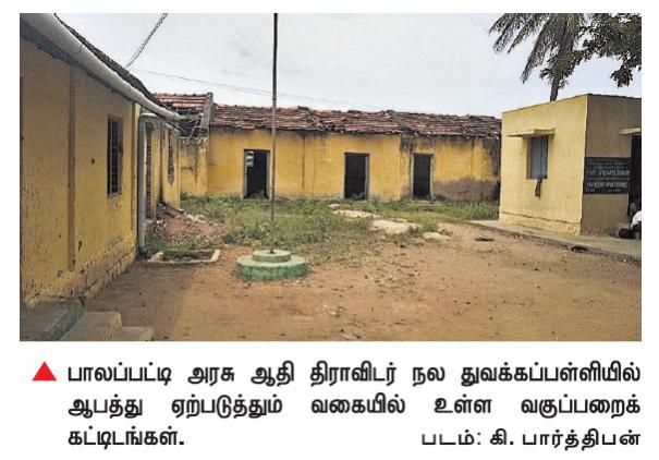 பாலப்பட்டி அரசு ஆதி திராவிடர் நலத் துவக்கப்பள்ளி வளாகத்தில் உள்ள பழமை வாய்ந்த வகுப்பறைக் கட்டிடங்கள் சிதிலமடைந்து காணப்படுகின்றன. எப்போது வேண்டுமானாலும் இடிந்து விழும் அபாயம் உள்ளது. எதிர்பாராத விபரீதம் ஏற்படுவதற்கு முன் அக்கட்டிடங்களை அகற்ற உரிய நடவடிக்கை எடுக்க வேண்டுமென, அப்பகுதி மக்கள் ‘தி இந்து’ நாளிதழின் உங்கள் குரல் பகுதியில் கோரிக்கை விடுத்தனர்.