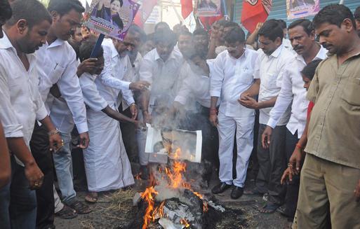 கோவை மாவட்டம் இடையர்பாளையம் பகுதியில் திரண்ட அதிமுகவினர், இளங்கோவன் உருவ பொம்மையை ஊர்வலமாக எடுத்துவந்து எரித்தனர்.