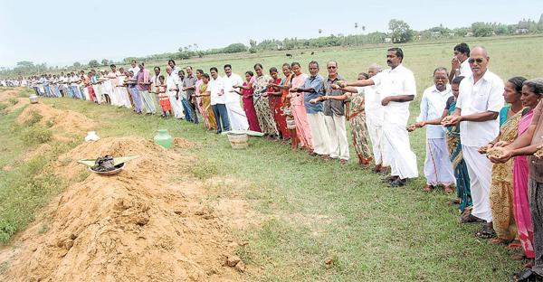அந்த வகையில், நீர்த்தேக்கத் திட்டத்துக்கு விளைநிலங் களைக் கையகப்படுத்த எதிர்ப்பு தெரிவித்து, நேற்று கண்ணன் கோட்டையில் விவசாயிகள் மனித சங்கிலி போராட்டம் நடத்தினர்.