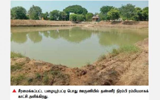 இந்நிலையில், டெல்லியைத் தலைமையிடமாகக் கொண்ட பிரதான் என்ற தனியார் நிறுவனத்தின் முயற்சியில் கிராம மக்களும், விவசாயிகளும் ஒருங்கிணைந்து இந்த ஊருணியை சீரமைத்துள்ளனர். தற்போது ஊருணியில் தண்ணீர் நிரம்பியுள்ளதால் கிராம மக்கள் மகிழ்ச்சியடைந்துள்ளனர்.