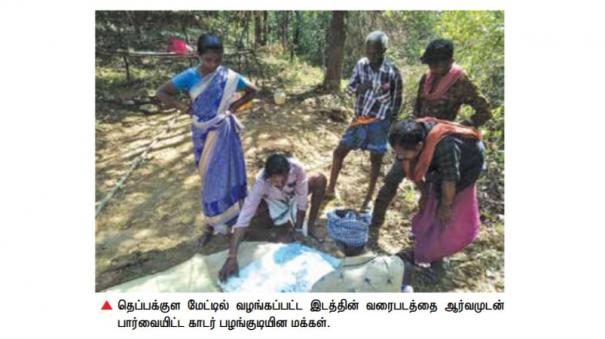 மாவட்ட ஆட்சியரின் உத்தரவுபடி, தெப்பக்குளம் மேடு பகுதியில் பொள்ளாச்சி சார் ஆட்சியர் தாக்கரே சுபம் ஞானதேவ் ராவ், ஆனைமலை புலிகள் காப்பக துணை இயக்குநர் கணேசன், மாநில ஆதிதிராவிடர் பழங்குடியின நல உறுப்பினர் லீலாவதி ஆகியோர் முன்னிலையில், இடம் ஒதுக்கீடு செய்ய அளவீடு பணிகள் நடைபெற்றது.