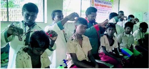 இதுதொடர்பாக தெய்வராஜ் கூறும்போது, அரசுப் பள்ளிகளை வளப்படுத்தி, மாணவர்களை சேர்க்க காமராஜர் பாடுபட்டார். அவர் இல்லையென்றால், தமிழகத்தின் கடந்த இரண்டு தலைமுறை பின்தங்கி தான் இருக்கும். அவரது பிறந்தநாளை கொண்டாடும் வகையில், கடந்த 13 ஆண்டுகளாக அரசுப் பள்ளி மாணவர்களுக்கு சிகை திருத்தம் செய்யும் பணியை, உறவினர் வழி சகோதரர்களை ஒருங்கிணைத்து குழுவாக செய்கிறோம். இதில் பெண்களும் ஈடுபடுவது மற்றொரு சிறப்பு. பெரிச்சிபாளையம் அரசு நடுநிலைப் பள்ளியில் படிக்கும் 100-க்கும் மேற்பட்ட மாணவர்களுக்கு செவ்வாய்க்கிழமை காலை 9 முதல் மாலை 3 மணி வரை சிகை திருத்தம் செய்யப்பட்டது.