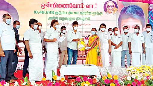 எடப்பாடி அடுத்த கச்சுப்பள்ளி பகுதியில் நடந்த நிகழ்ச்சிக்கு, சேலம் மேற்கு மாவட்ட திமுக பொறுப்பாளரும், முன்னாள் அமைச்சருமான செல்வகணபதி தலைமை வகித்தார். மின்துறை அமைச்சர் செந்தில் பாலாஜி, எம்பி பார்த்திபன், எம்எல்ஏ ராஜேந்திரன் உள்ளிட்டோர் கலந்து கொண்டனர். இந்நிகழ்ச்சியில், பொதுமக்களுக்கு இலவச அரிசியை, உதயநிதி ஸ்டாலின் வழங்கி பேசியதாவது: