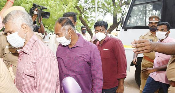 இந்த வழக்கின் விசாரணை மதுரை நீதிமன்றத்தில் முதன்மை நீதிபதி வடிவேல் முன்னிலையில் நேற்று தொடங்கியது. இதையடுத்து தர் உட்பட 9 பேரும் நீதிமன்றத் தில் பலத்த பாதுகாப்புடன் ஆஜர்படுத்தப்பட்டனர். 9 பேருக்கும் 2,027 பக்க குற்றப்பத்திரிகை நகல் வழங்கப்பட்டது.