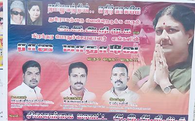 காரைக்குடிசசிகலாவை ஆதரித்து தேனியில் அதிமுக நிர்வாகி ஒட்டியுள்ள போஸ்டர்.