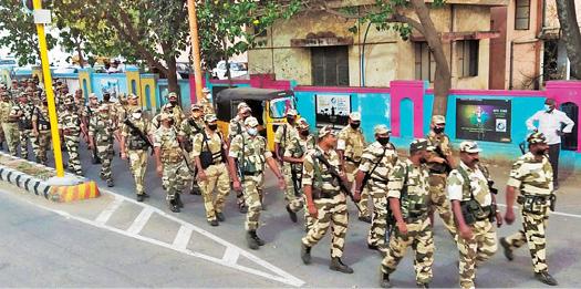 கிருஷ்ணகிரி மாவட்டத்தில் சட்டப்பேரவை தேர்தலை பாதுகாப்பாகவும், அமைதி யாகவும் நடத்துவதற்காக, கர்நாடக மாநிலம் மங்களூரில் இருந்து மத்திய தொழில் பாதுகாப்பு படையைச்சேர்ந்த 92 வீரர்கள் கிருஷ்ணகிரிக்கு வந்துள்ளனர். சட்டப்பேரவை தேர்தலில் பொதுமக்கள் அச்சமின்றி வாக்களிக்கவும், பாதுகாப்புடன் தேர்தல் நடத்தப்படும் என்பதை வலியுறுத்தி பொதுமக்களுக்கு விழிப்புணர்வு ஏற்படுத்தும் வகையிலும் மத்திய படையினர் நேற்று கிருஷ்ணகிரியில் கொடி அணிவகுப்பு நடத்தினர்.