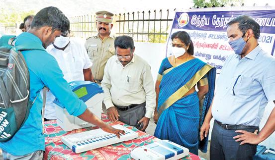 ஆட்சியர் கூறும்போது, மாதிரி வாக்குப்பதிவு முகாமில், வாக்காளர்களிடம் மின்னணு வாக்குப்பதிவு ,இயந்திரத்தில் எவ்வாறு வாக்களிக்க வேண்டும் என்பது குறித்தும், வாக்காளர்கள்யாருக்கு வாக்களித்தார்கள் என்பதை அவர்களுக்கு மட்டும் தெரிவிக்கும் வகையில் அமைக் கப்படும் வாக்காளர் வாக்குப்பதிவு தணிக்கைஇயந்திரம் (விவிபேட்) செயல்படும் விதம் குறித்தும் விரிவாக செயல்விளக்கம் அளிக்கப்படுகிறது என்றார்.
