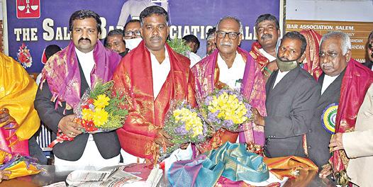 சேலம் வழக்கறிஞர்கள் சங்க தேர்தலில் வெற்றி பெற்ற புதிய நிர்வாகிகள் நேற்று பொறுப்பேற்றுக் கொண்டனர்.