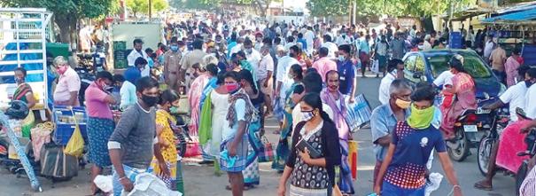 தமிழகத்தில் கரோனாவை கட்டுப்படுத்தமுழு ஊரடங்கு கடைபிடிக்கப்படுகிறது. மளிகை, காய்கறி கடைகள் மட்டும் காலை 6 மணி முதல் 10 மணி வரை திறந்திருக்க அரசுஅனுமதி அளித்துள்ளது. வாரச்சந்தைகள் கூடுவதற்கு தடை விதிக்கப்பட்டுள்ளது.