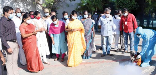 தூத்துக்குடி மாநகராட்சி பகுதியில் குப்பை சேகரிப்பு வண்டிகளில் ஒலிபெருக்கி அமைத்து கரோனா தடுப்பூசி குறித்து விழிப்புணர்வு ஏற்படுத்தும் பணி, கரோனா நோய் தொற்று பரவாமல் இருக்க பெரிய வாகனம் மூலம் கிருமி நாசினி தெளிக்கும் பணி மற்றும் கொசு பரவலை தடுக்க கைப்பம்புகள் மூலம் புகை மருந்து அடிக்கும் பணி ஆகியவற்றின் தொடக்க நிகழ்ச்சி மாநகராட்சி அலுவலக வளாகத்தில் நேற்று காலை நடைபெற்றது. மாவட்ட ஆட்சியர் கி.செந்தில் ராஜ் தலைமை வகித்தார். மாநகராட்சி ஆணையர் சரண்யா அறி முன்னிலை வகித்தார்.