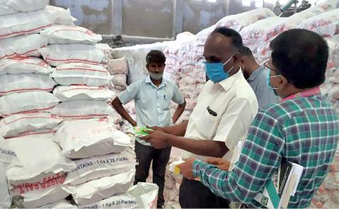தூத்துக்குடி பெரிய கடைவீதியில் உள்ள ஒரு தயாரிப்பு நிறுவனத்தின் நிர்வாக அலுவலகத்தில் ஆய்வு செய்த போது, வேறு பிராண்ட்களின் பெயருடன் பேக்கிங் பவுச்சுகள் மற்றும் அந்நிறுவனத்துக்குரிய பேக்கிங் பவுச்சுகளில் முழுமையான தயாரிப்பு முகவரி இன்றியும், உணவு பாதுகாப்பு உரிம எண் அச்சிடாமலும் சுமார் 622 கிலோ பேக்கிங் பவுச்கள் இருந்தன. சுமார் ரூ.1 லட்சம் மதிப்புள்ள அவை பறிமுதல் செய்யப்பட்டன.