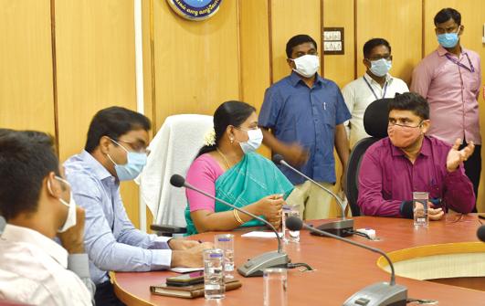 மாவட்ட சிறப்பு கண்காணிப்பு அலுவலரான தமிழ்நாடு திறன் மேம்பாட்டு கழக மேலாண்மை இயக்குநர் கோ.பிரகாஷ், மாவட்ட ஆட்சியர் கி.செந்தில் ராஜ், மாவட்ட ஊரக வளர்ச்சி முகமை திட்ட இயக்குநர் சரவணன், உதவி ஆட்சியர் (பயிற்சி) ஸ்ருதஞ் ஜெய் நாராயணன், மாநகராட்சி தலைமை பொறியாளர் சேர்மக்கனி, உதவி செயற்பொறியாளர் சரவணன், குடிநீர் வடிகால் வாரிய செயற்பொறியாளர் செந்தூர்பாண்டியன், மாநகராட்சி நகர்நல அலுவலர் வித்யா உள்ளிட்டோர் கலந்து கொண்டனர்.